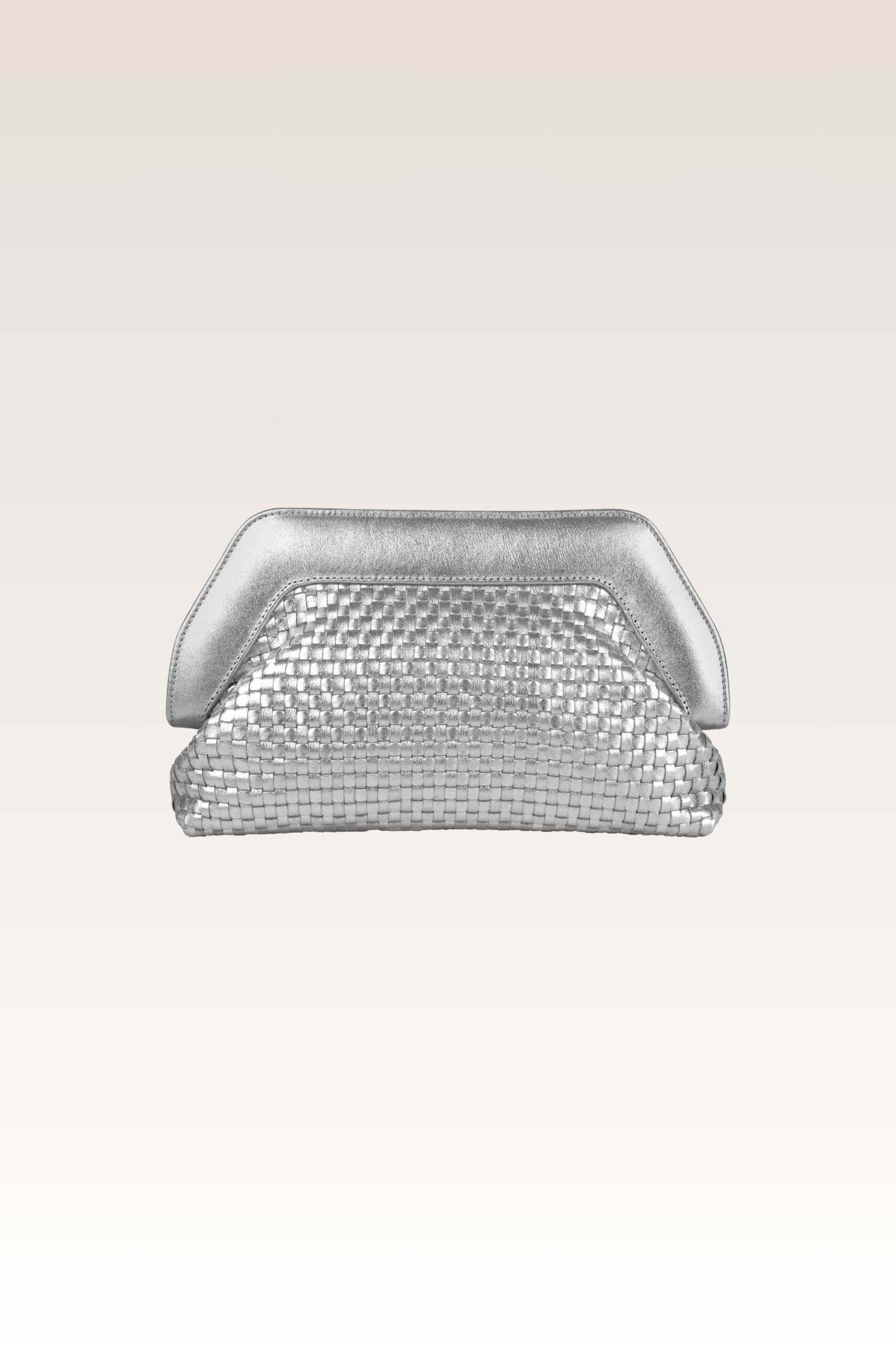 Bolsa em couro Cor Trissê Prata Velho. Forro Camurça verde. Alças: uso à mão ou no ombro. Produto artesanal: medidas podem variar. Metais com acabamento banho em 18 escovado. Feito no Brasil.