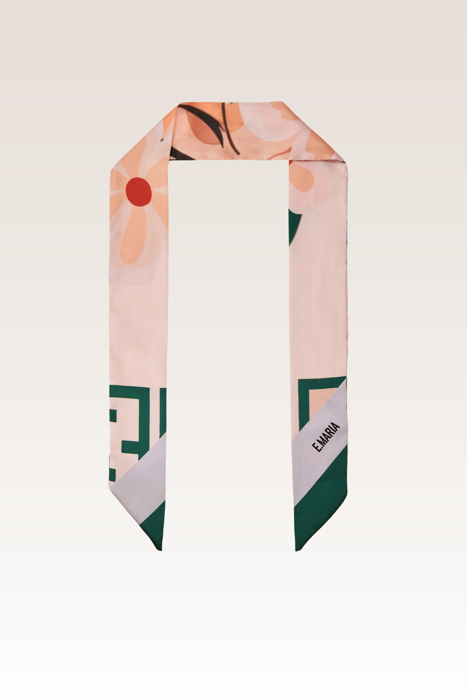 Este twilly é uma criação original da coleção E.Maria. Produzido no Brasil em tecido nobre de brilho delicado e toque suave, carrega a leveza  e a força de uma história viva. Sua arte exclusiva, concebida por uma designer brasileira, traduz elegância, identidade e a beleza de nossas raízes.